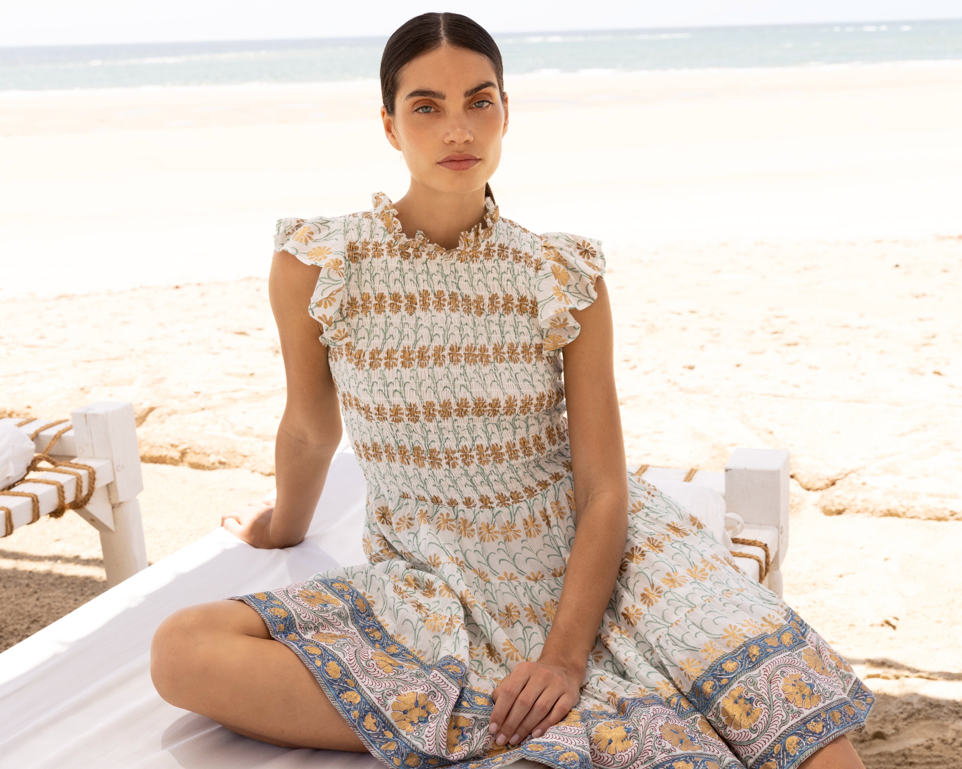 The Ivy Dress and Liliana Dress introduce a new resort look—flutter sleeves, empire waists, cotton voile in motion.