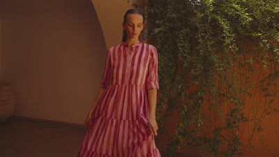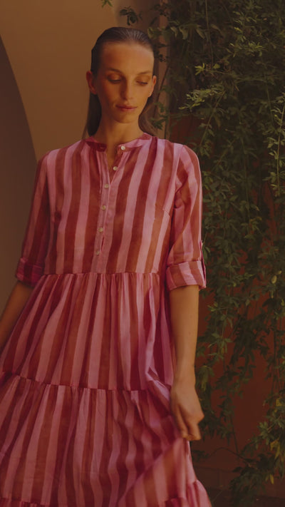 Long Sleeve Shirt Dress Mini- Cabana Rhubarb