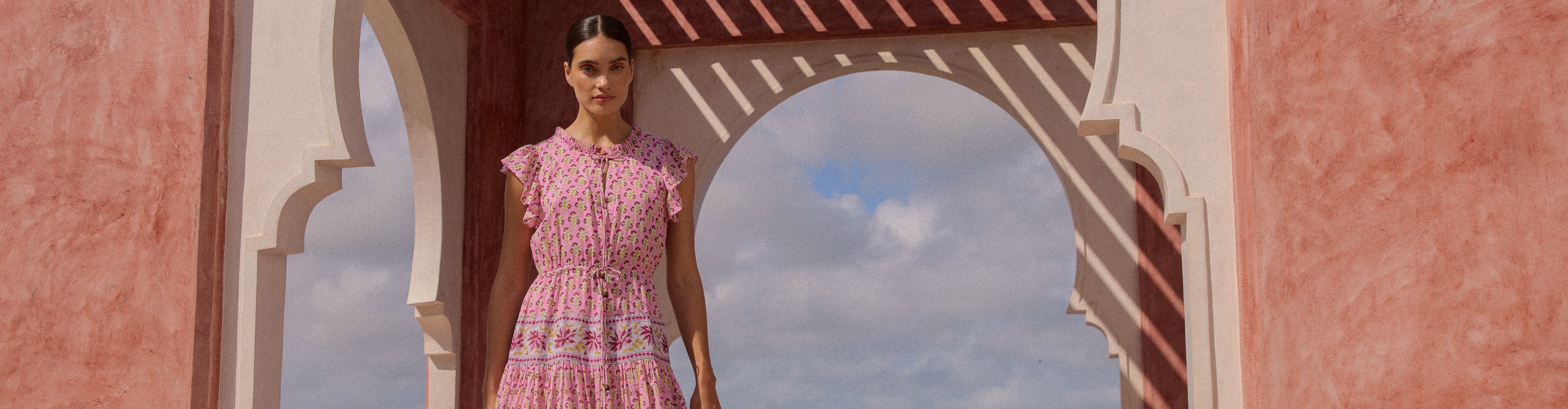 Sleeveless Smocked Maxi- Cabana Rhubarb