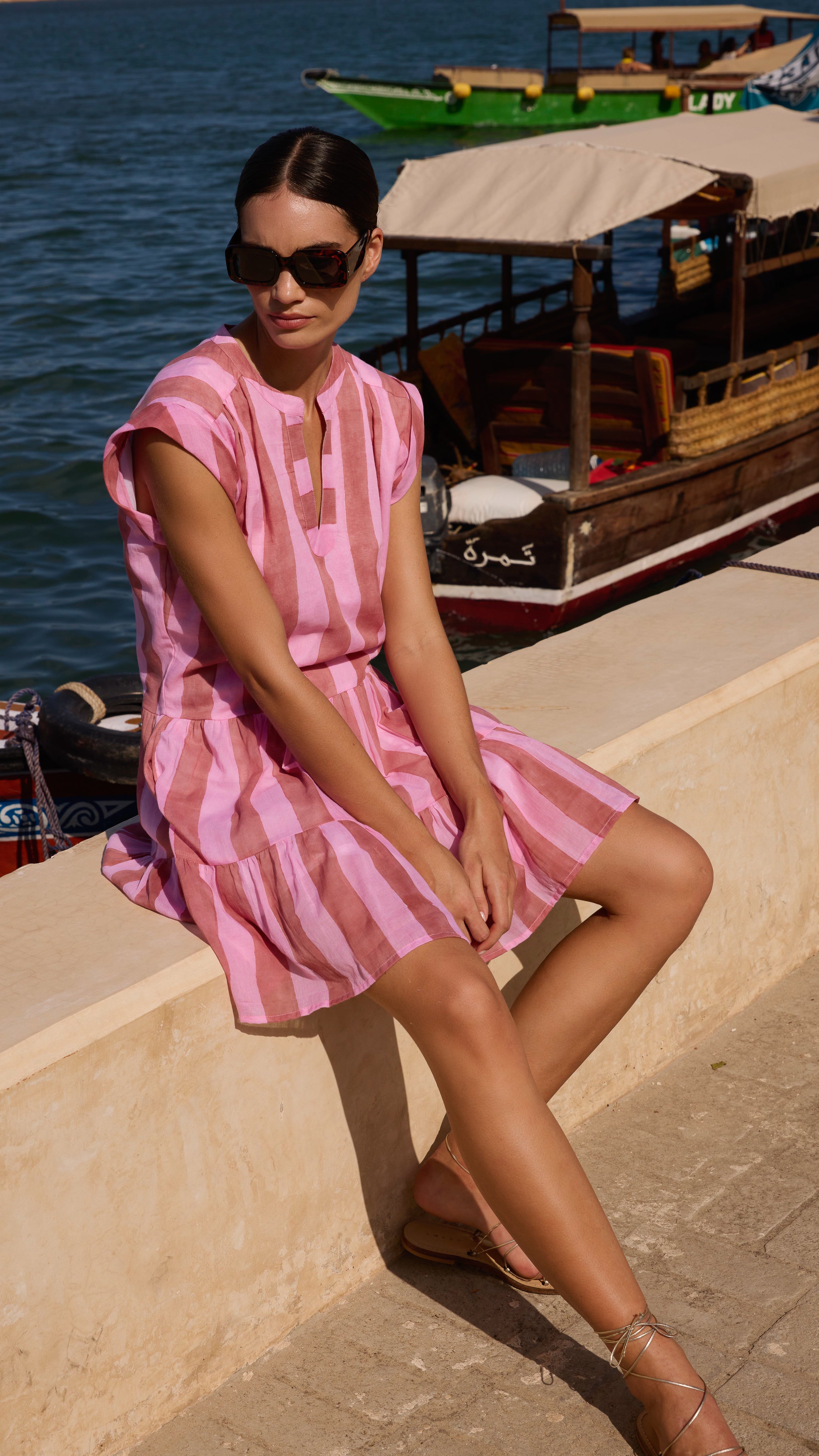 Long Sleeve Shirt Dress Mini- Cabana Rhubarb