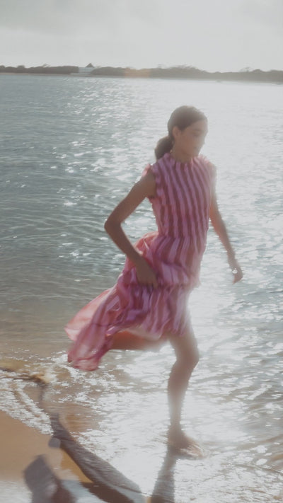 Sleeveless Smocked Maxi- Cabana Rhubarb