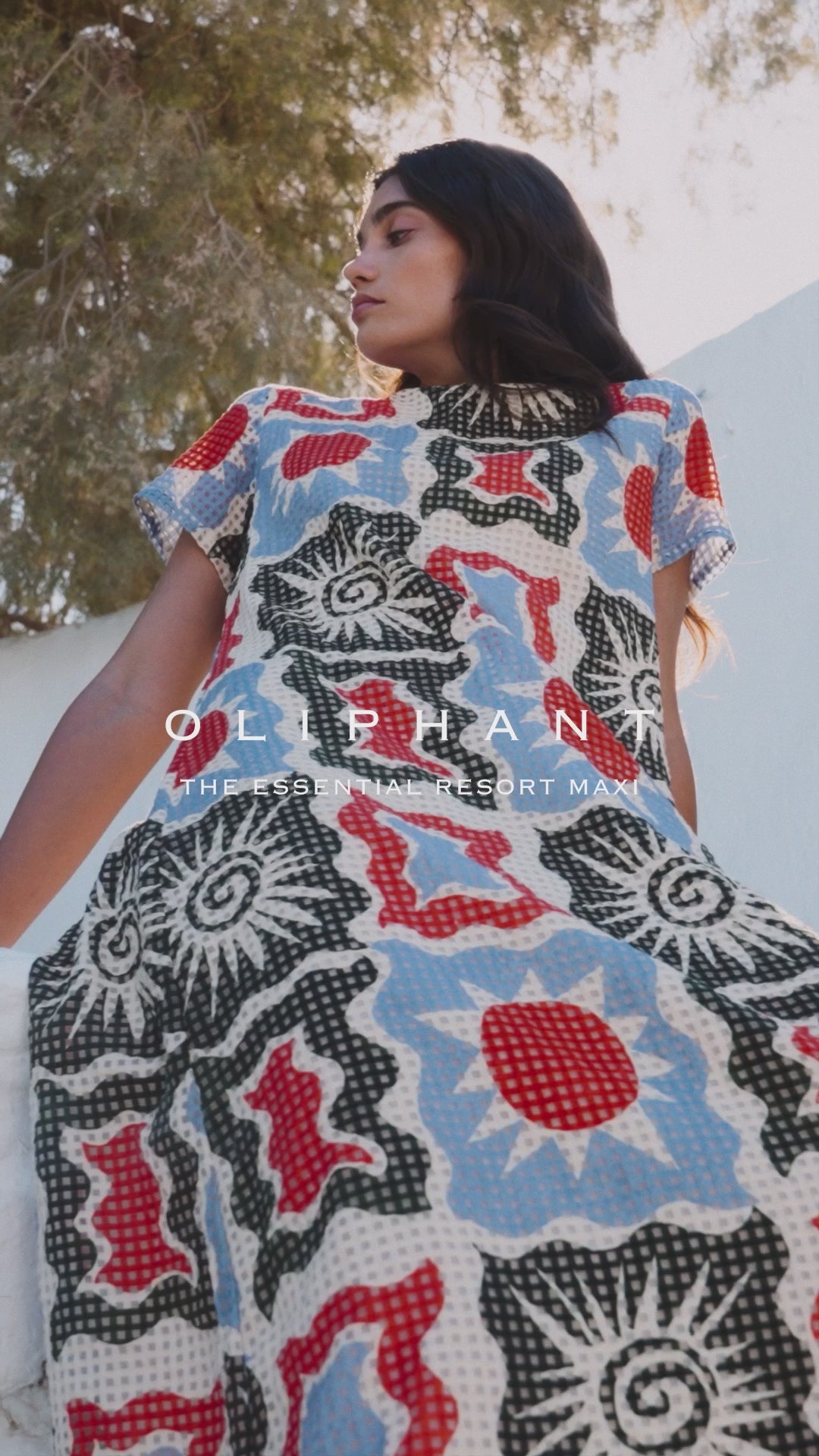 An effortless A-line silhouette in Helios Blue, crafted from specialty open-weave cotton that catches the light with a subtle, luminous sheen. A refined essential for sun-drenched escapes.