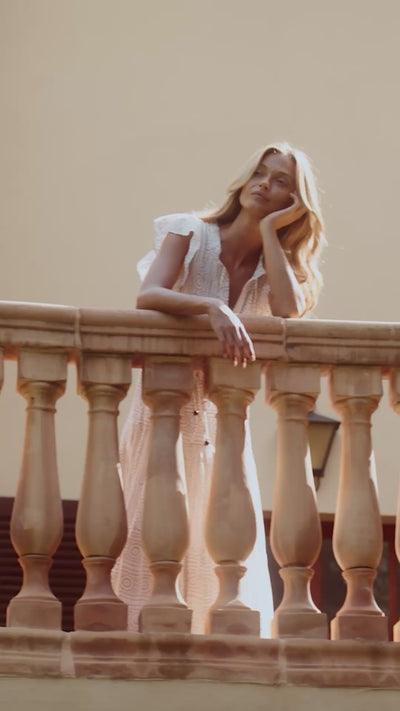This edition of our Cinched Flirty Midi is crafted from cotton voile in a soft cream, elevated by hand-block printed gold detailing. The metallic shimmer catches the light beautifully, whether you're strolling through a sun-drenched market or attending a seaside dinner. With its effortless movement and delicate texture, it’s the ultimate golden hour dress.