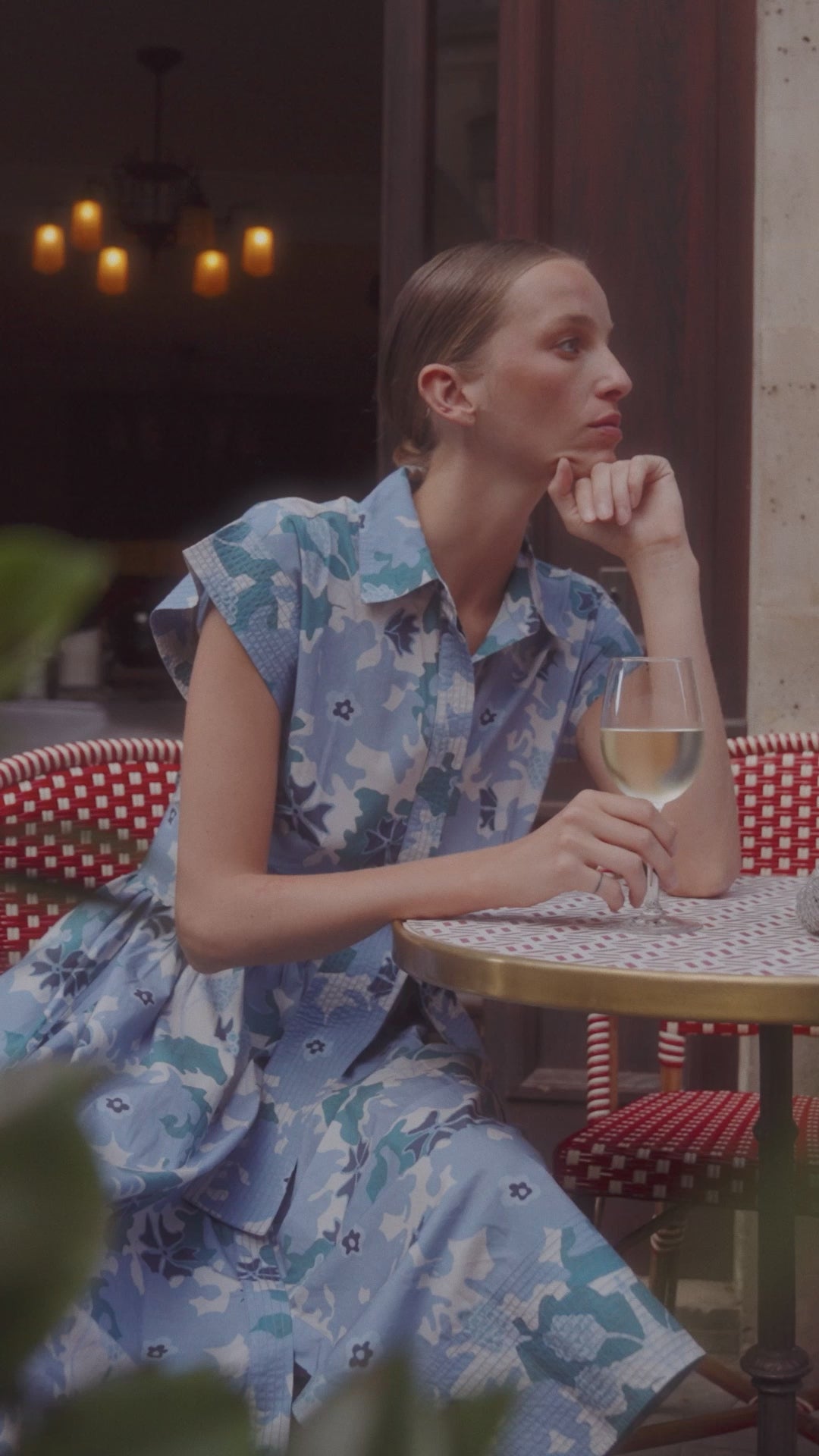 Crisp cotton poplin fabric featuring serene blue florals add delightful pops of color to this classic, feminine look.
